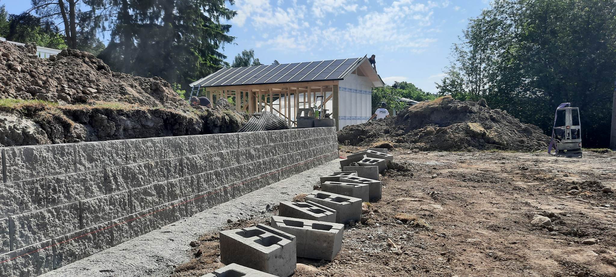 Murbyggnation och attefallsbyggnad i Sanda.