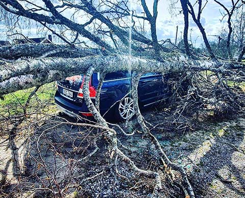 Skadade eller farliga träd åtgärdas omgående oavsett säsong med anpassad metod.