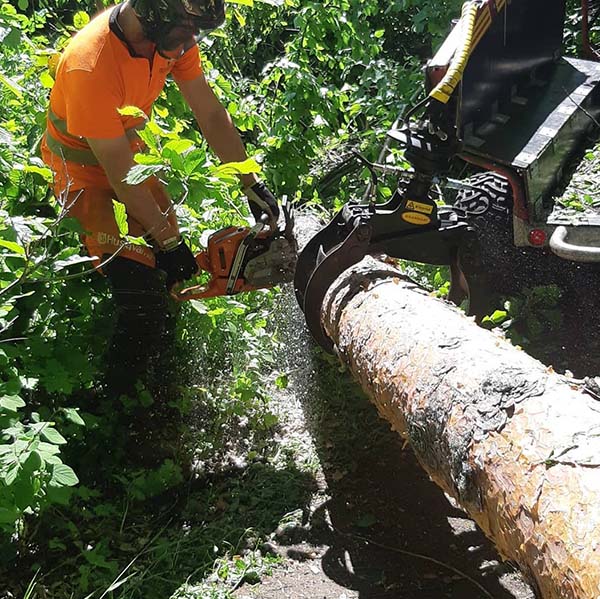 Kapning, flisning, vedhantering samt stubbfräsning och bortforsling för en prydlig återställning.